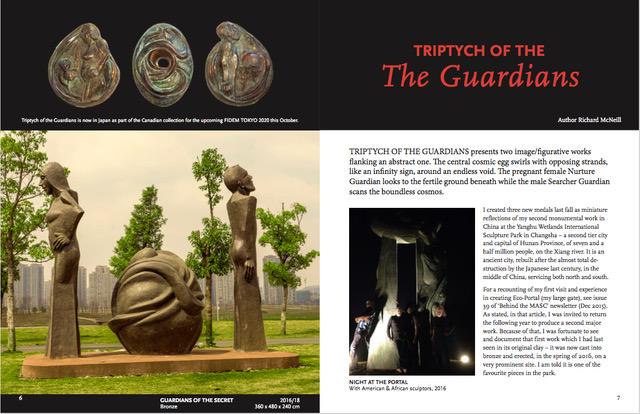 Ahead of three new bronze medals being presented in Japan, I have contributed to the Spring edition (issue 52) of the new Behind the MASC publication. This article explores my current processes and development of these new works, Triptych of The Guardians; miniature reflections of my second monumental work in China at the Yanghu Wetlands International Sculpture Park in Changsha.